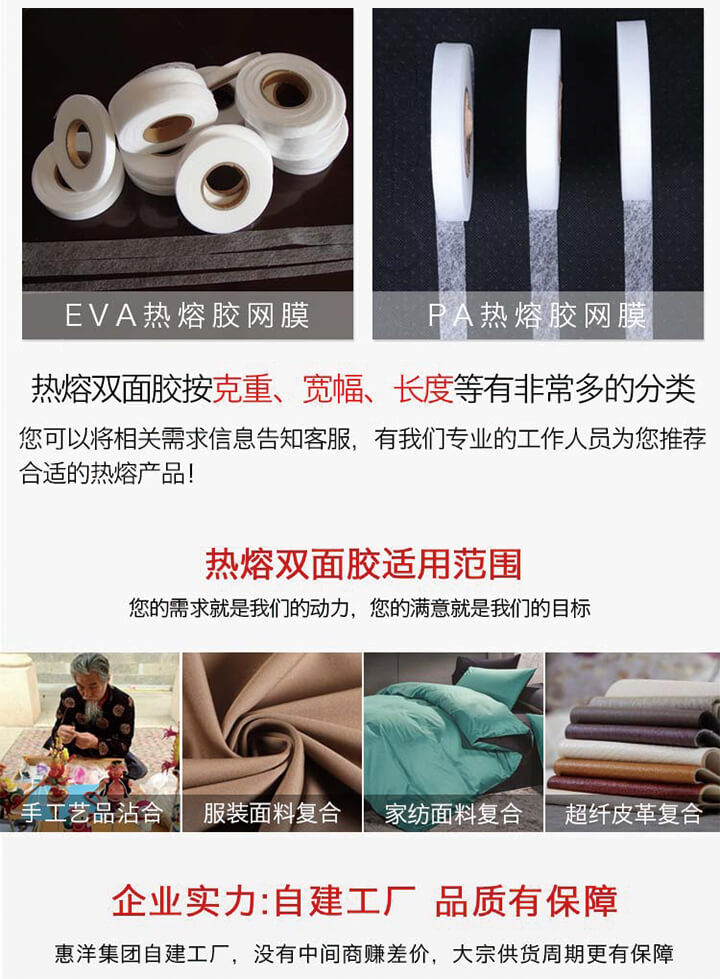 熱熔膠網膜切片又名熱熔雙面粘合襯,廣泛應用于服裝、布料的復合使用。規格齊全,歡迎咨詢工作人員拿樣試用!